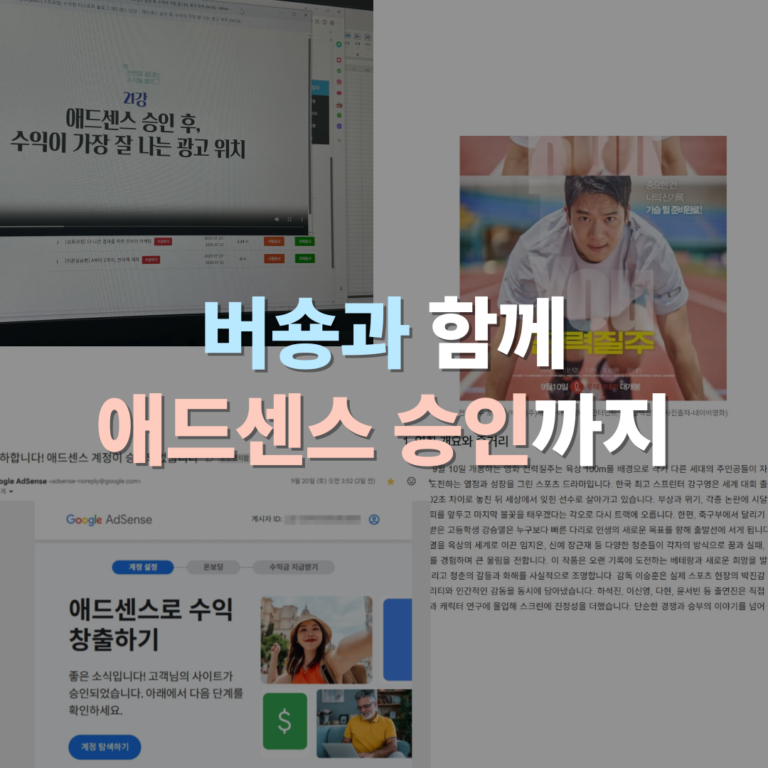 더불어 버숑 에듀에서 애드센스 강의를 시청하며 티스토리 블로그도 본격적으로 키우기 시작했어요.