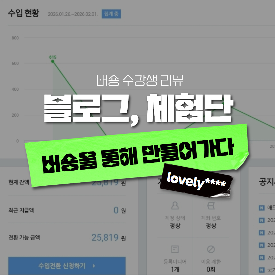 버숑을 통해 애드포스트라는 수익 모델을 처음 접하고, 이를 달성하여 실제로 수입으로 연결되는 점이 무척 신기했습니다.