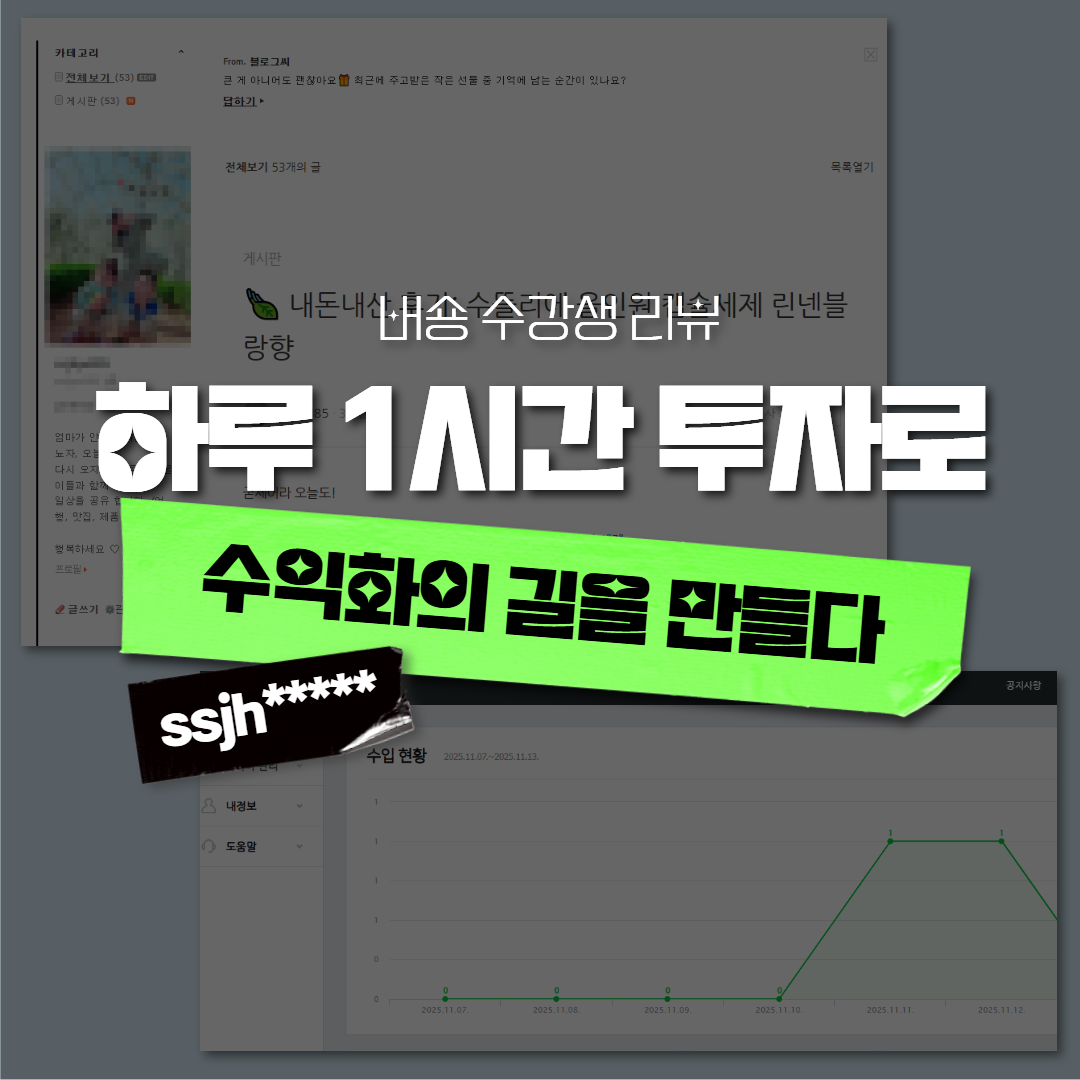 안녕하세요. 저는 아이가 초등학교에 입학하면서 퇴사를 하게 되었습니다. 학교 수업도 2~3시면 끝나고 방학 기간이 한 달 정도 되어서 집에 혼자 있게 하는 것이 불안했기에 퇴사를 결정하게 되었습니다. 퇴사 후 집에서 할 수 있는 일거리를 알아보던 중 해외 위탁 판매를 큰돈 주고 배워서 반년 정도 진행을 해보았는데 판매할 수 있는 아이템도 제한적이고 수입도 기대치에 미치지 못했습니다. 게다가 무료로 할 수 있는 것이 아니라 매달 지출되는 프로그램 비용이 있다 보니 마이너스가 되는 상황이 되더라고요. 그래서 과감하게 위탁 사업은 접기로 하고 다시 무슨 일을 해야 하는지부터 고민하기 시작했습니다. 네이버 블로그, 티스토리, 인스타 공구, 유튜브 등등 길은 많았지만 어떻게 해야 하는지가 너무 막막했습니다. 그러다 우연히 버숑 에듀를 알게 되었고 보통 티스토리만 배우거나, 유튜브만 배우는데 버숑 에듀에서는 여러 방면으로 접근해 볼 수 있었고 동영상 강의도 꼼꼼하게 설명해 주시는 부분이 좋았지만 실제로 어떻게 적용할 수 있는지 실습까지 해볼 수 있다는 점이 가장 좋았습니다.